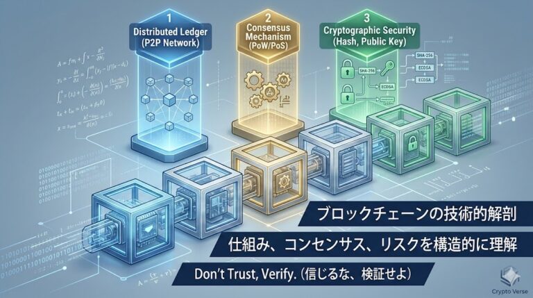 ブロックチェーンの技術的構造:分散型台帳・コンセンサス・暗号技術の完全解剖【2026年版】