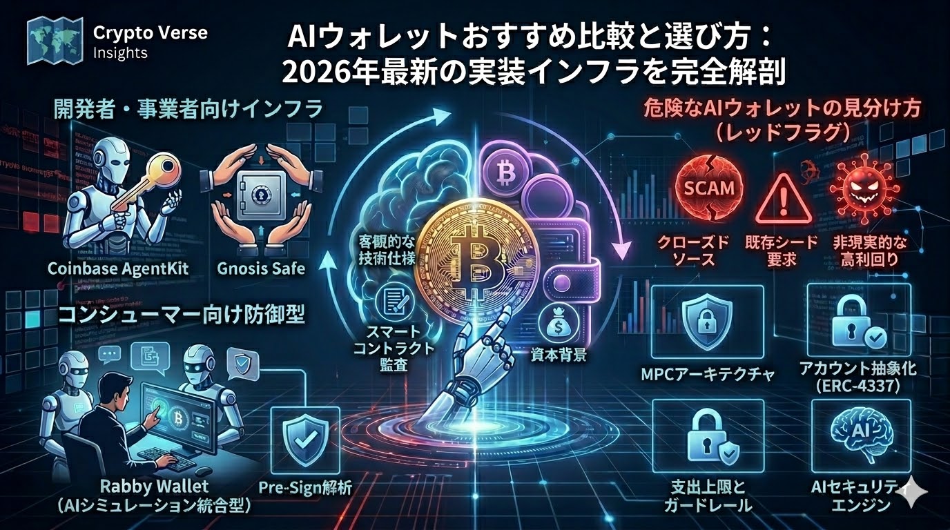 「おすすめのAIウォレットはどれか?」という疑問に対し、マーケティングの謳い文句ではなく、スマートコントラクトの構造とセキュリティ基盤(ガードレール)の有無という客観的データに基づく「正しい選び方の基準」を提示すること。および、現在市場を牽引する主要な実装インフラを比較検証することです。