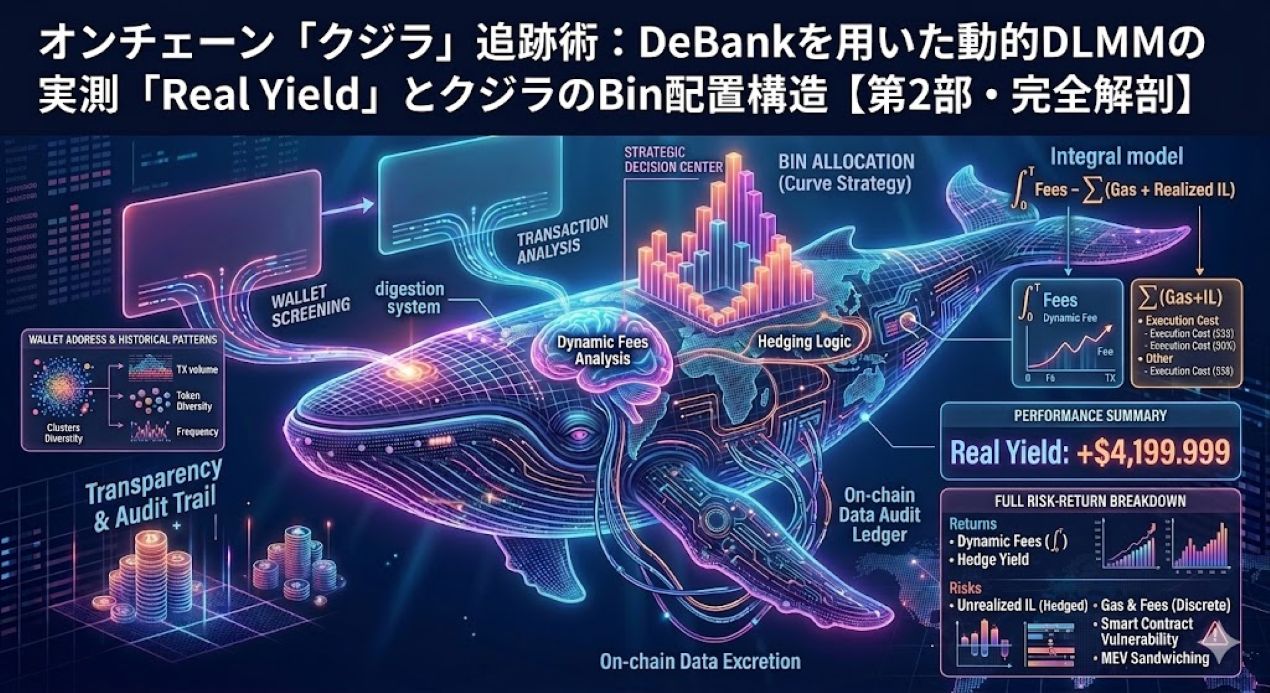 オンチェーン「クジラ」追跡術:DeBankを用いた動的DLMMの実測「Real Yield」とクジラのBin配置構造【第2部】